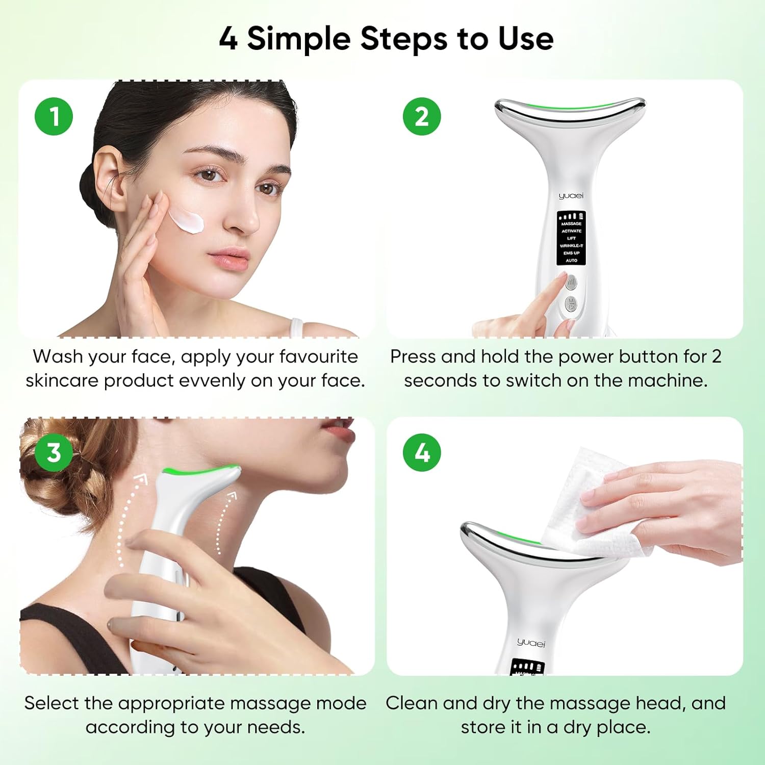 4 ADJUSTABLE INTENSITY LEVELS: Equipped with 4 intensity levels, this EMS facial gua sha tool adapts to different skin types including dry, oily, or sensitive skin. Whether you prefer gentle care or a more focused treatment, you can easily adjust the strength for a customized and enjoyable skincare experience.